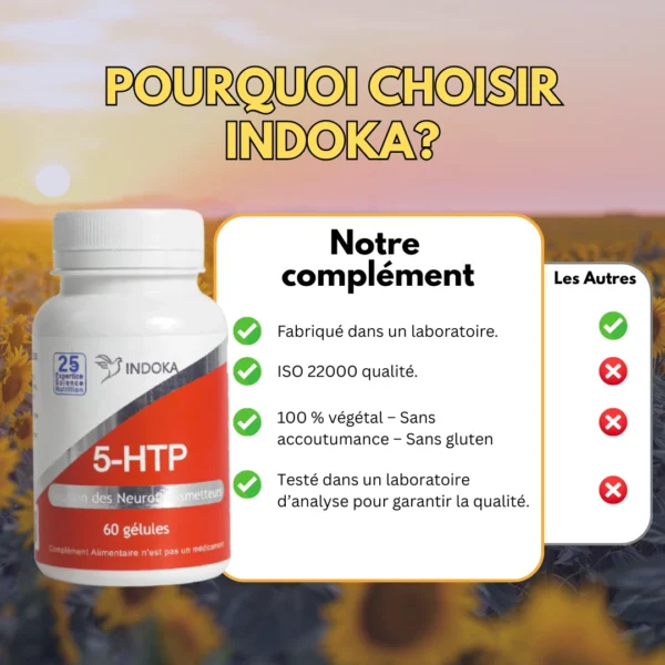 Le 5-HTP est un acide aminé naturellement présent dans l’organisme. Il agit comme
