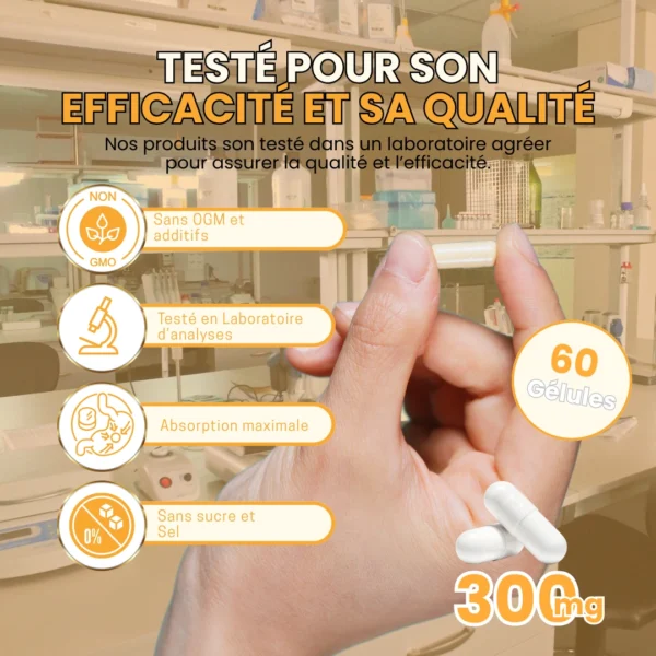 - Posologie recommandée : 50 à 300 mg par jour, en 1 à 3 prises