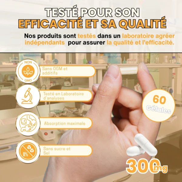 - Forme : Gélules végétales de 300 mg – facile à avaler, bien tolérées