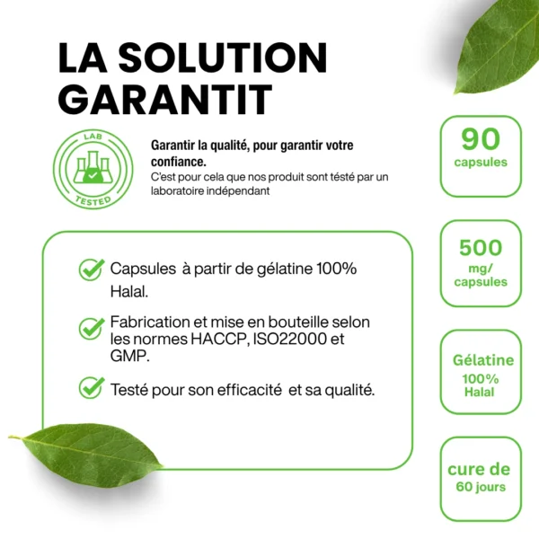 - 500 mg d’extrait par capsule