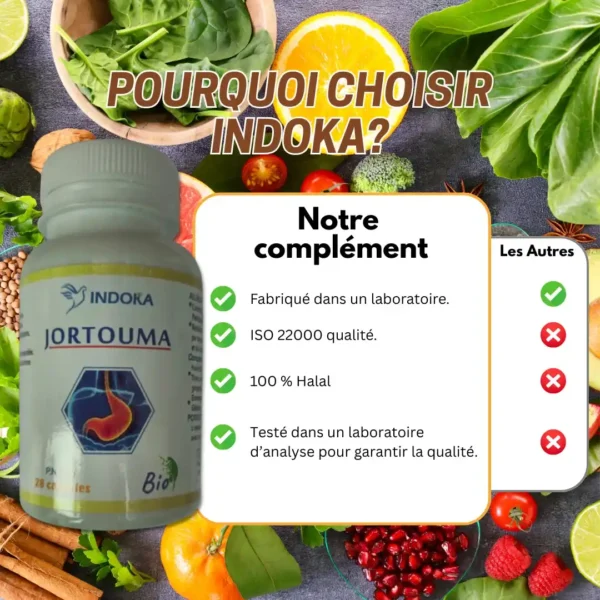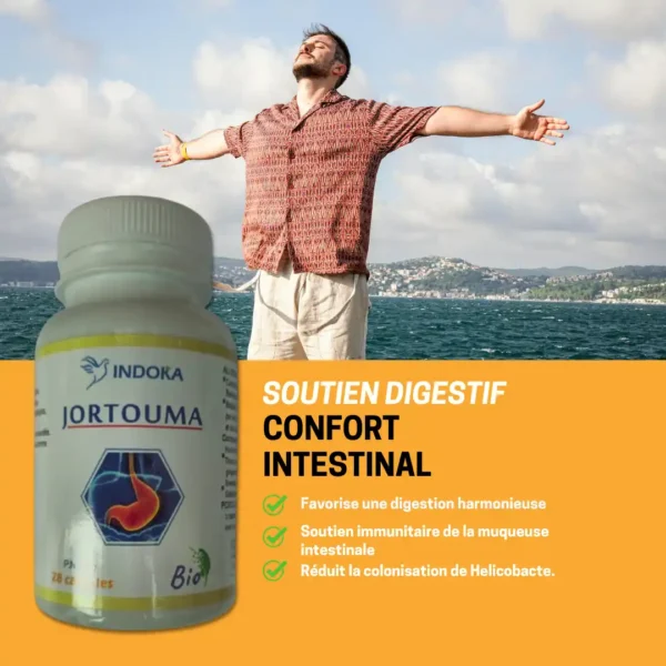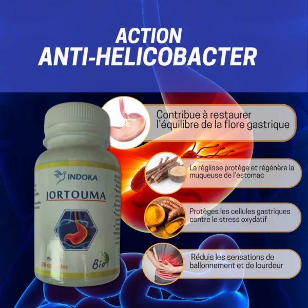 JORTOUMA associe des extraits de plantes traditionnelles reconnues pour leur action contre Helicobacter pylori et le soutien de la muqueuse gastrique. Formulé pour aider à réduire la colonisation bactérienne et apaiser les inconforts digestifs associés.