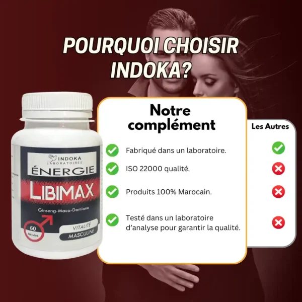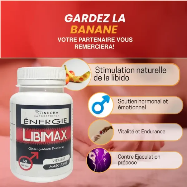 LIBIMAX est un complément alimentaire conçu pour soutenir la libido, la vitalité sexuelle et le bien-être général. Sa formule associe trois plantes adaptogènes et aphrodisiaques reconnues pour leur efficacité naturelle :