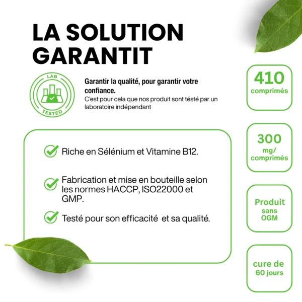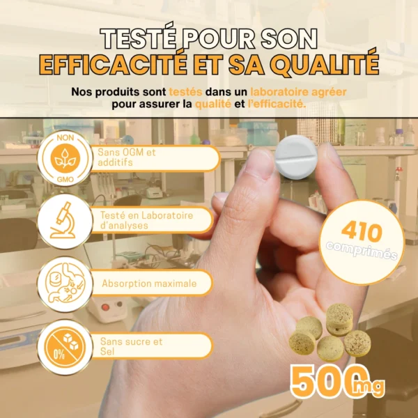 410 comprimés par boîte – cure de 137 jours (1 comprimé/jour) à env. 45 jours (3 comprimés/jour) - Précautions d’emploi :
